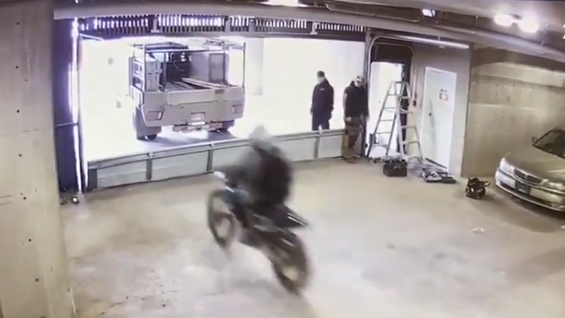 KAMLOOPS — Surveillance video posted to social media Wednesday (Mar. 24) shows the lengths a thief went to in order to make off with a motorcycle.